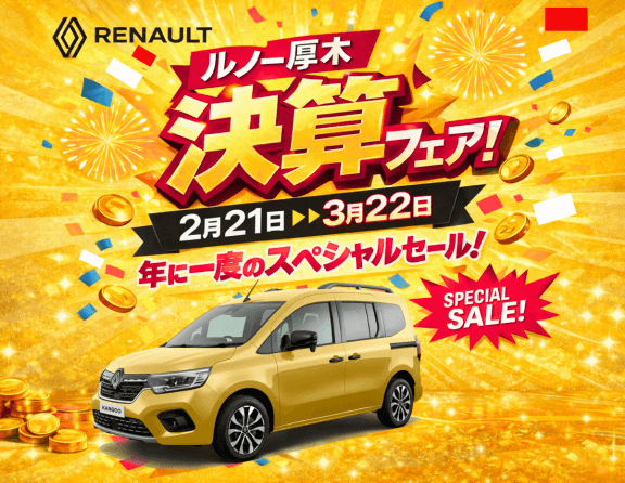 ルノー厚木決算フェア開催! NEW 2026.02.16.Mon INFO ルノー厚木 から、見逃せないビッグイベントのお知らせです。🎉 年に一度の「決算フェア」開催 🎉このたび ルノー厚木 決算フェア を開催いたします。店内も気分も一気に盛り上がる、まさに“年に一度のスペシ... MORE