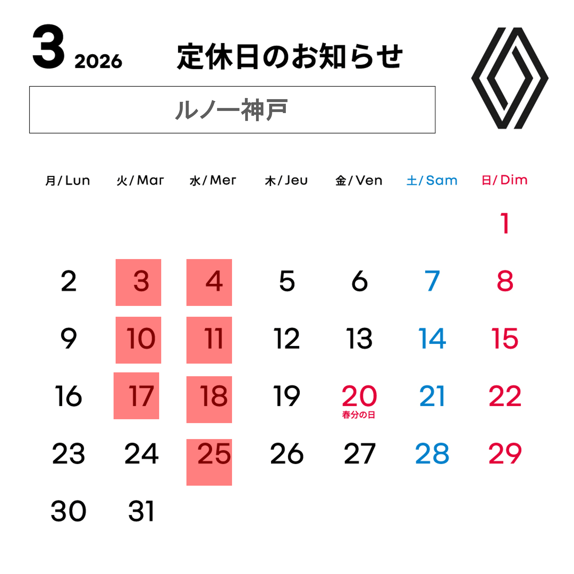 その前に今月の定休日です。
