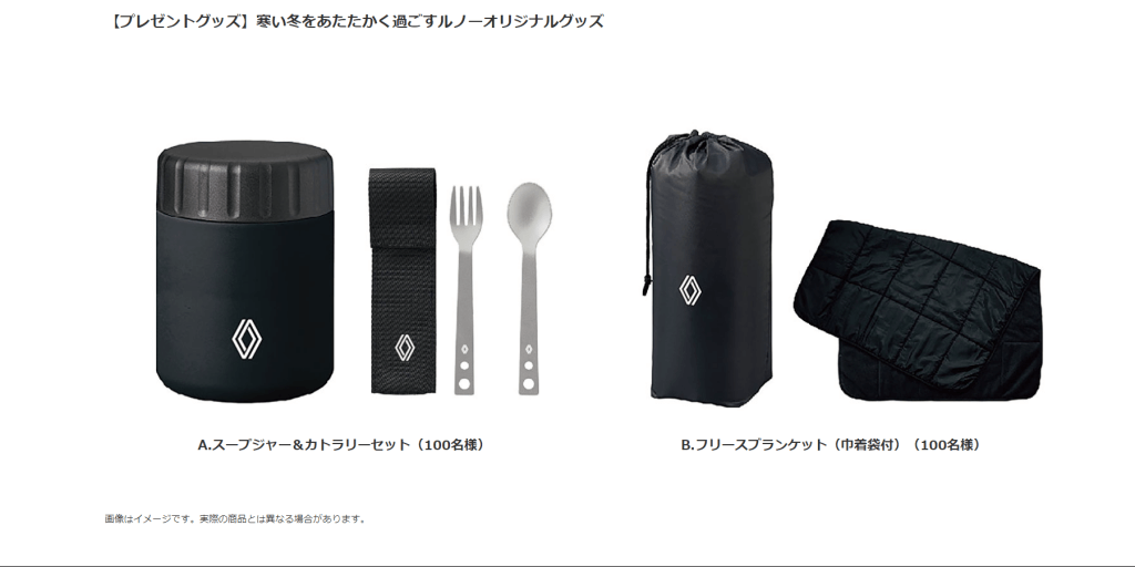 キャンペーン期間中にルノー純正オイルを交換し、キャンペーン応募サイトから応募・アンケートに答えると抽選で合計200名の方にルノーオリジナルグッズをプレゼントします!🎁