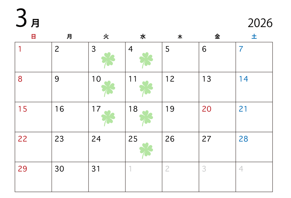 最終週に限りまして、水曜日のみを定休とさせていただいております。