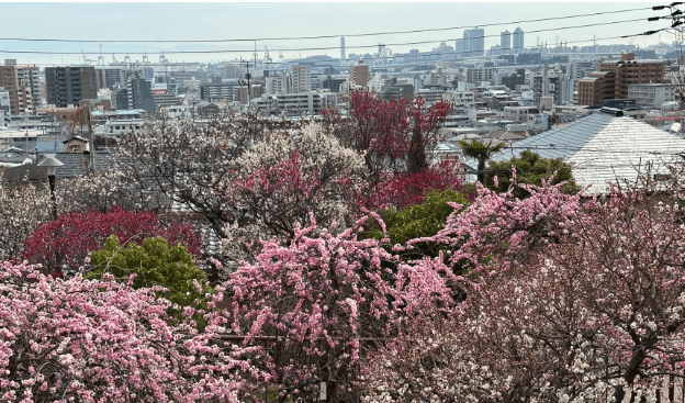 この梅園は傾斜地になっているため、神戸市内の街並みから大阪湾までが一望できます☝️