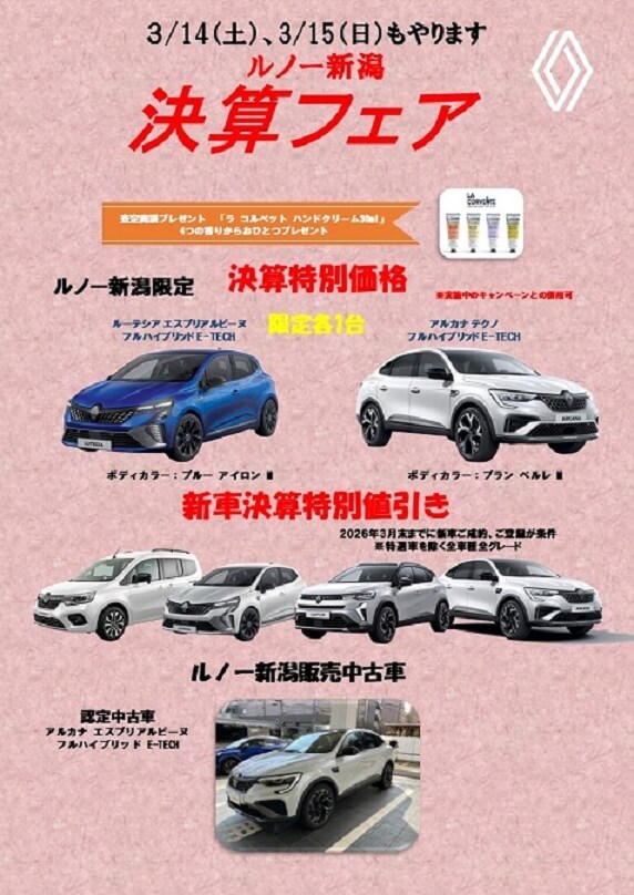 決算フェアの詳しい内容はルノー新潟までお問合せください。