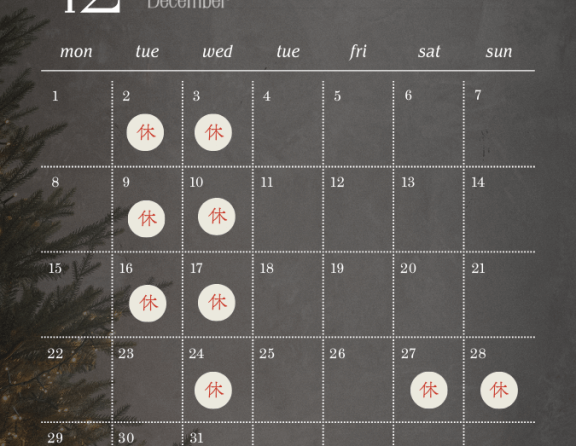 2025年12月の定休日のご案内 2025.11.30.Sun INFO 2025年12月27日(土)から 2026年1月3日(土)までの8日間 ※2026年1月4日(日)より、通常営業を開始いたします。 ー定休日ー 毎週水曜日・第1、2、3火曜日 ー営業時間ー ショールー... MORE