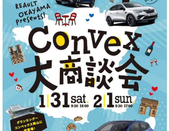 コンベックス大商談会先取りフェア開催中! 2026.01.15.Thu INFO Bonjour!! ルノー岡山では、 1月14日から1月30日まで コンベックス大商談会先取りフェアを開催しております! 1月31、2月1日に開催予定のコンベックス岡山での大商談会に先行して、 ルノー... MORE