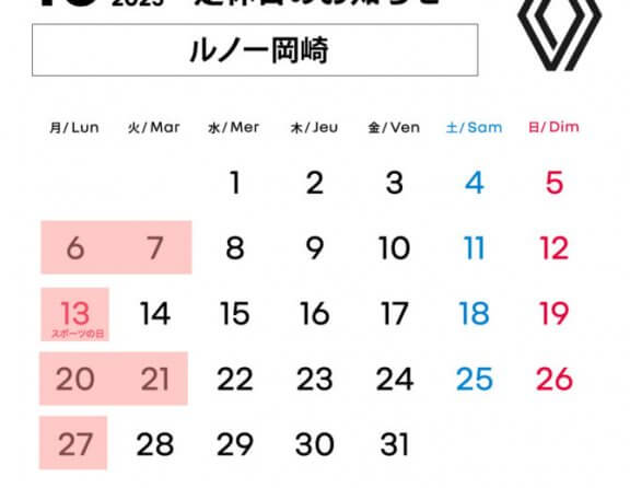 【10月カレンダー】 NEW 2025.10.01.Wed INFO 10月のカレンダーです。いつも通り毎週月曜日+第1第3火曜日が定休日となります。工場はひと月先まで予定が埋まりますので、有効期限のある車検やメンテナンスパックにご加入の方はお早めにご相談下さい。 MORE