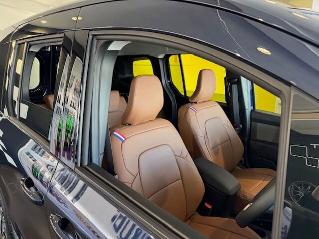 ボディカラー[ブルー ソーダライトM ]とシートカバーの明るいブラウンのカラーが、お互いを引き立てあってとってもお洒落に✨