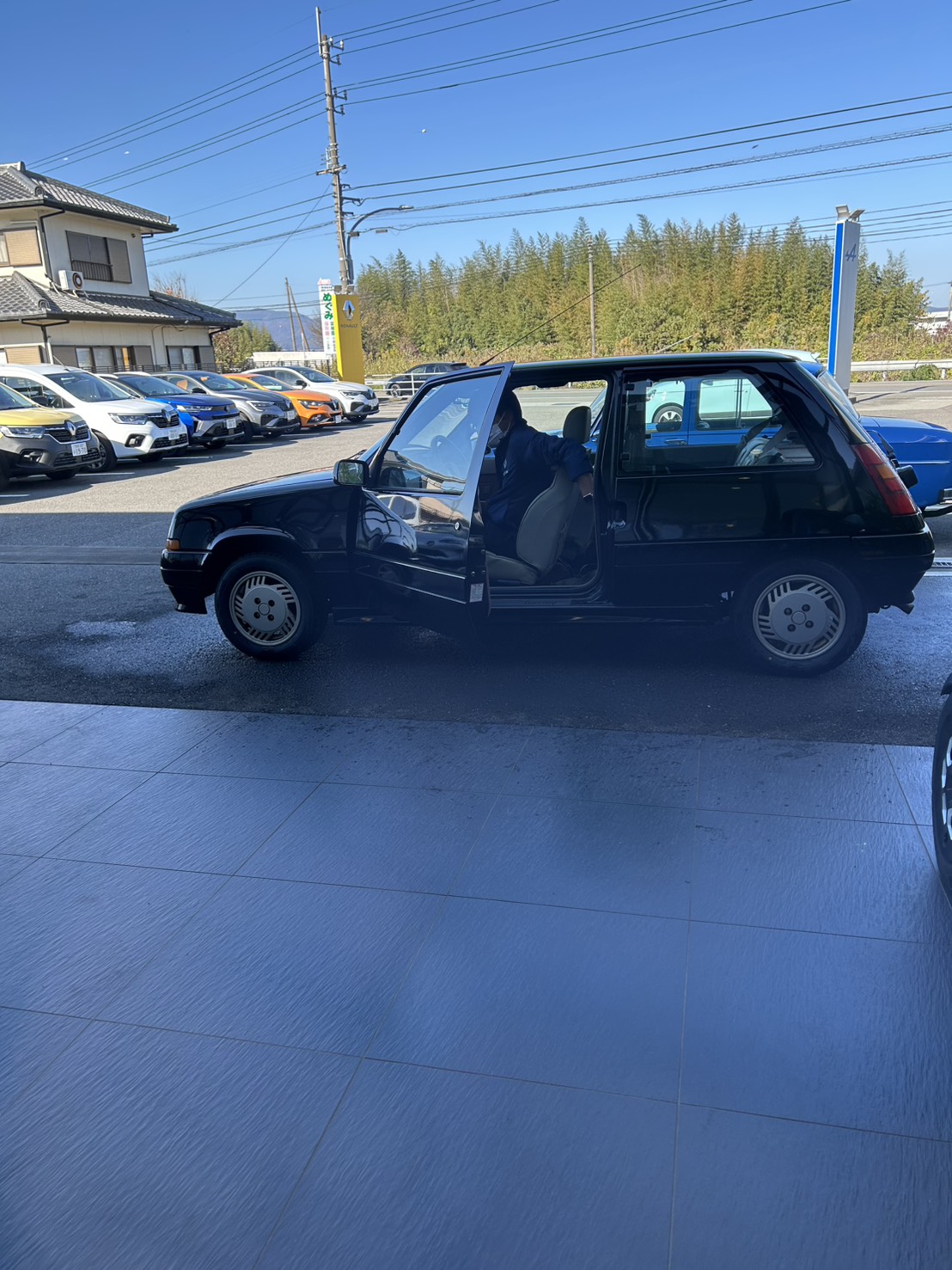 洗い終えてから、Shunjiは、「ま、ちょっとガソリン入れに行きましょうか!」(早く乗りたい気持ちを抑えられないような表情で。)