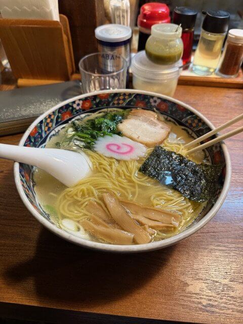 すこし運動をして小腹がすいたので、ちかくにある塩ラーメン店へ