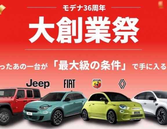 モデナ36周年大創業祭 2026.02.13.Fri INFO 日頃のご愛顧に感謝を込めて―― ルノー人気モデルを対象に 特別購入サポートフェアを開催いたします。 📅 2月14日(土)〜2月22日(日) モデルごとに異なる購入資金サポートに加え、 2.4%残価設定... MORE